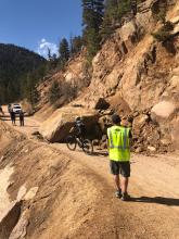 A portion of Gold Camp Road is now closed to vehicles until further notice due to a large boulder blocking the roadway. The closure is from the northern boundary of North Cheyenne Cañon Park, north of the Chutes and Ladders trailhead, to the gravel parking lot uphill from Helen Hunt Falls. The boulder fell into the road Sunday, April 25. The USDA Forest Service will be assessing all options for remediation. The public is asked to please avoid the area to minimize traffic issues associated with overcrowding.